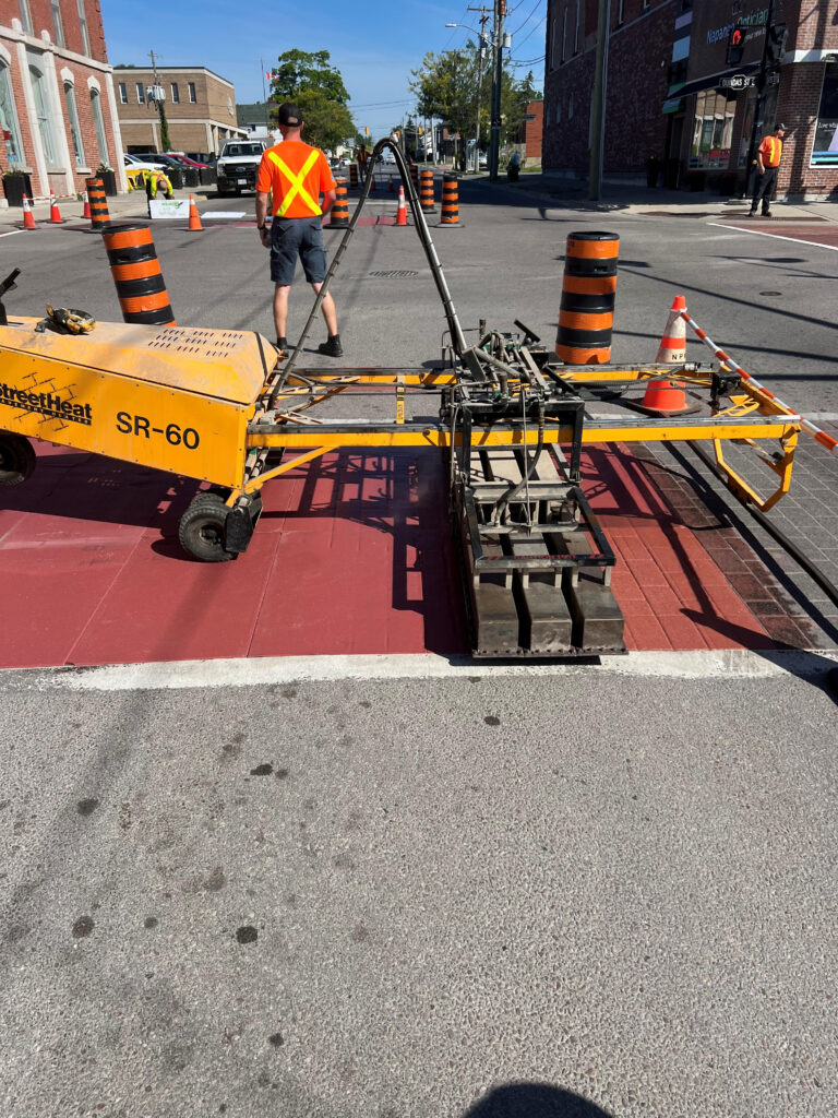 As seen in downtown Kingston, stamped asphalt can even be used to highlight historical features—such as marking the original footprint of a fort—while maintaining a smooth, accessible surface.